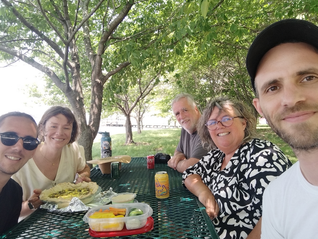 De Baltimore un avion (en retard d’une bonne heure) nous dépose à Charlotte (Caroline du nord) où grâce à une course à travers tout l’aéroport (trèèès looong l’aéroport) nous arrivons à temps pour prendre l’avion vers Montréal (grâce à une interruption de l’embarquement pour cause d’orage). Là un Uber nous dépose à notre appart-hôtel à 2 heures du matin. Dodo !