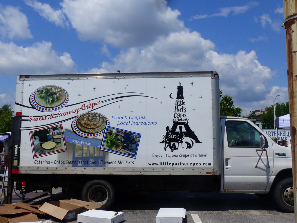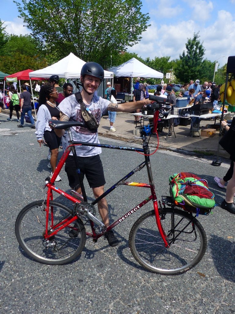 On a aussi fait un tour de marché où il y avait un stand de french crèpes et un copain de Bastien avec un grand vélo (il faut bien savoir anticiper l’arrêt…et le casque n’est pas forcément superflu).