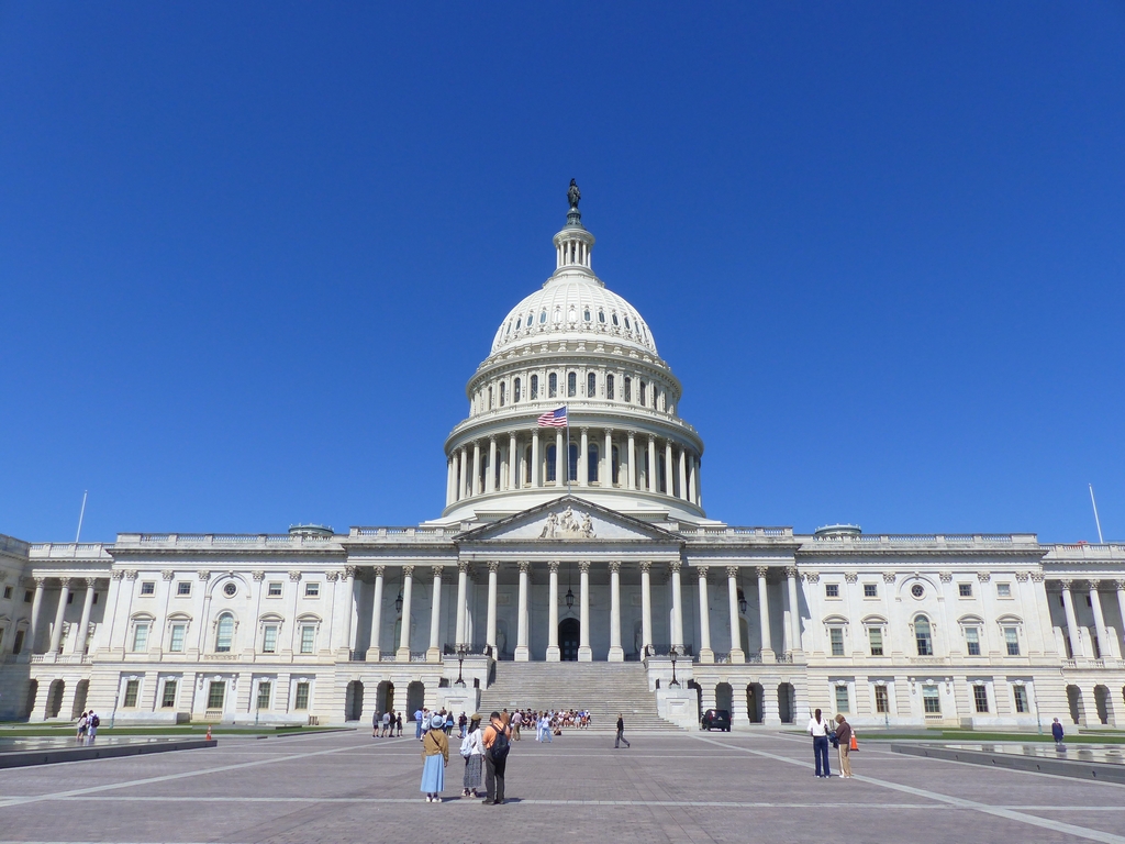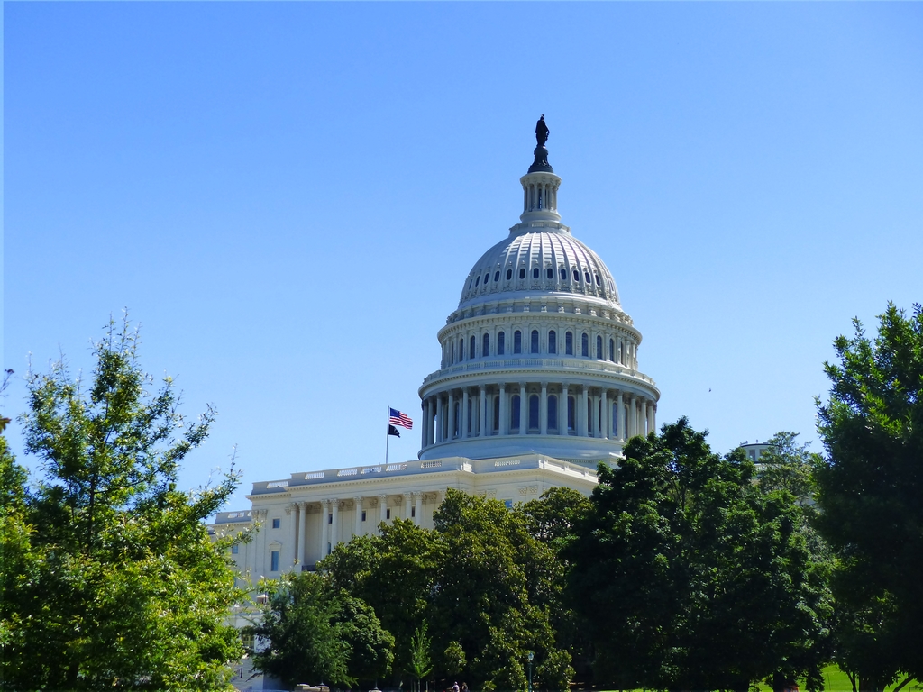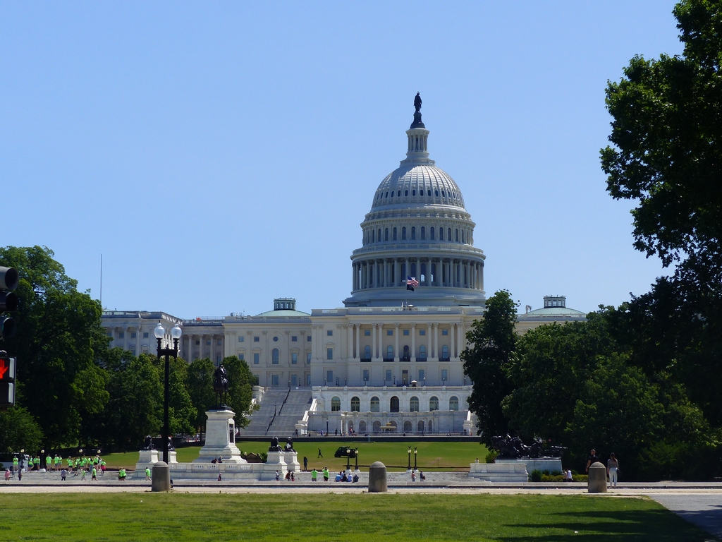 Tout d’abord le Capitole, qui sert de siège au Congrès, le pouvoir législatif des États-Unis. Construit de 1793 à 1812, il est constitué d’un dôme et de deux ailes. L’aile nord est le siège du Sénat et l’aile sud est celle de la Chambre des représentants.