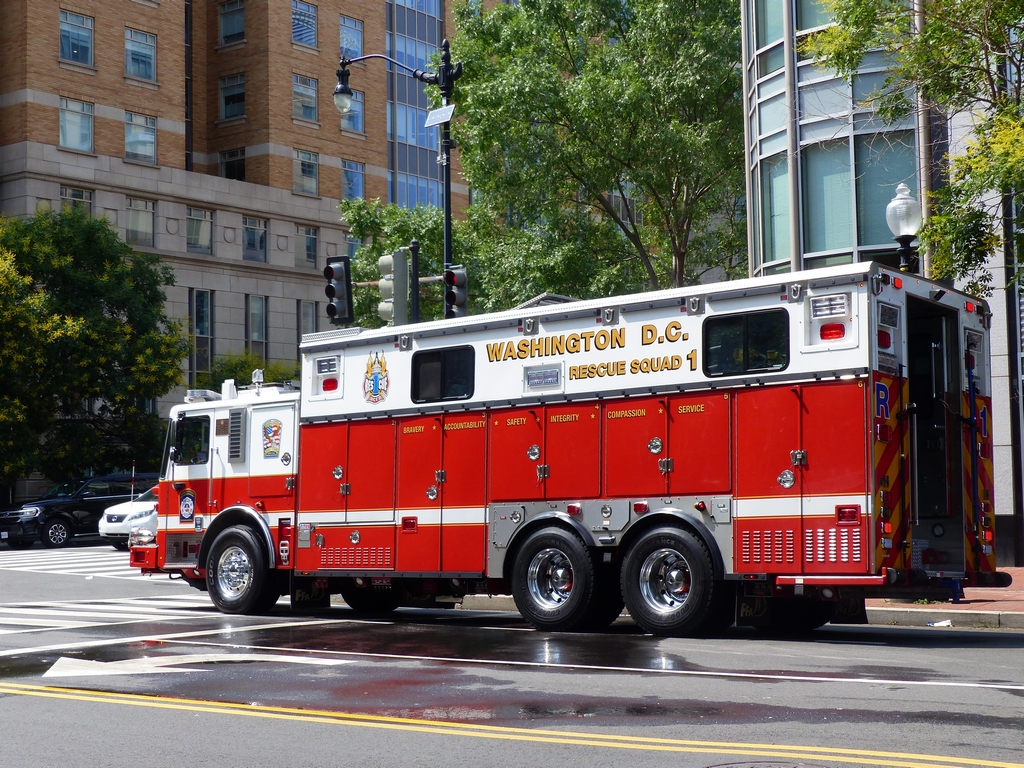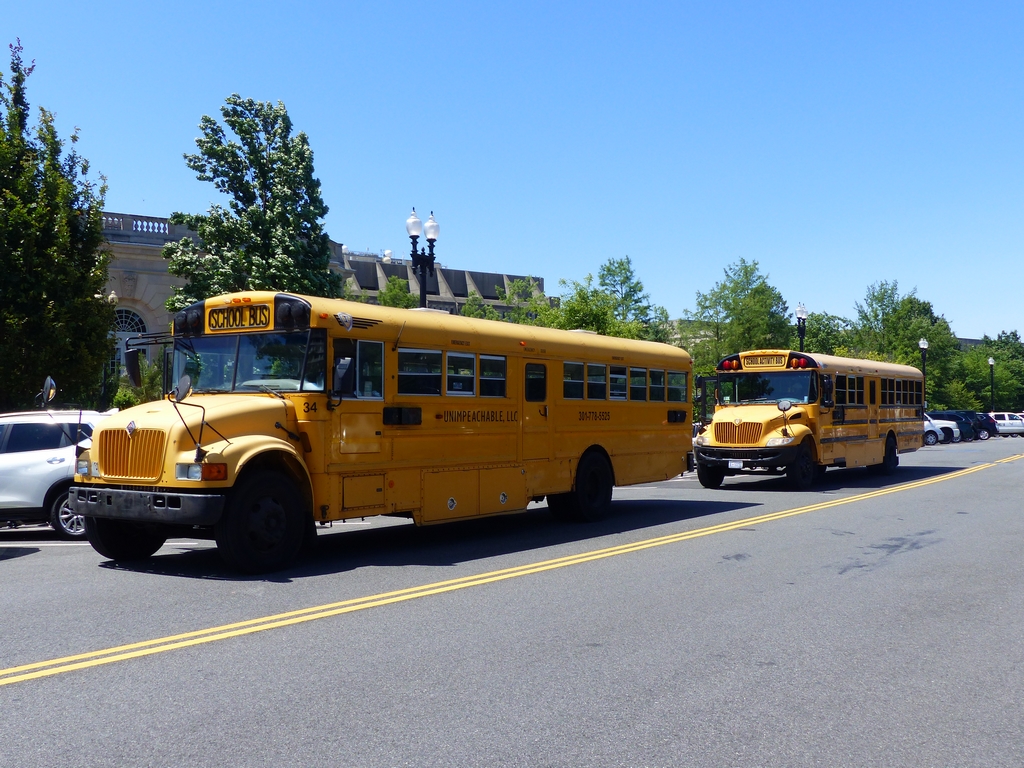 Un des très très nombreux écureuils du National Mall, un American Robin (en français Merle D’Amérique), des bus scolaires et un camion de pompier (je retombe en enfance).