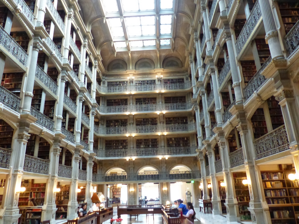Juste à côté on a visité la bibliothèque George Peabody dont l’intérieur est souvent considéré comme l’un des plus beaux du monde. Achevée en 1878, de style néo-grec, l’atrium s’élève à 18,5 mètres de haut jusqu’à une verrière. Effet whaou garanti dès le franchissement de la porte d’entrée !
