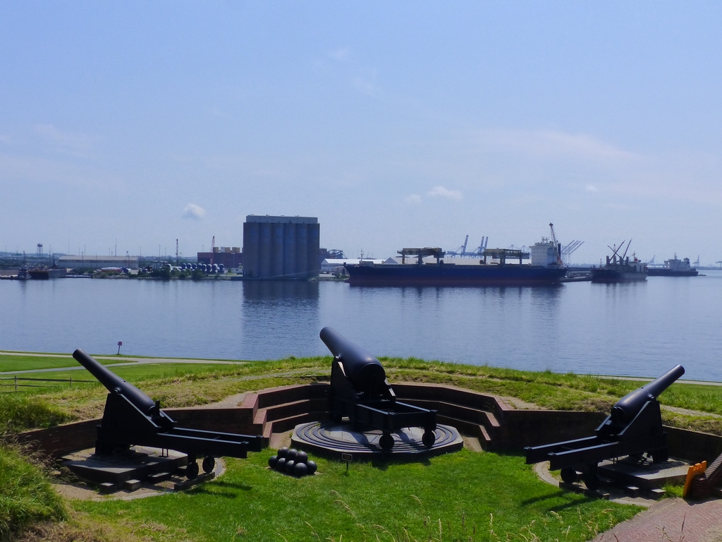 De retour à Baltimore, et profitant du beau temps, nous sommes allés pique-niquer à Fort McHenry, place forte bâtie en 1776 durant la guerre d’indépendance à l’entrée de la baie de Chesapeake. Le bombardement de ce fort par la marine britannique (pendant la guerre anglo-américaine de 1812) inspira à Francis Scott Key le texte du poème The Star-Spangled Banner qui, mis en musique, devint l’hymne national des États-Unis.