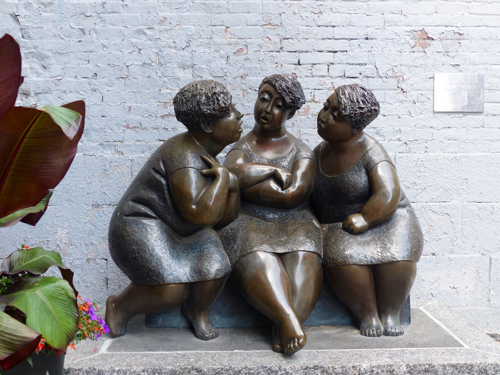 Mais il n’y a pas que des maisons à voir. On a vu une belle sculpture appelée “Les Chuchoteuses” (bronze de Rose-Aimée Bélanger), une sculpture très laide appelée “Cybertruck” (erreur marketing d’Elon Musk), La colonne Nelson qui est l’un des plus anciens monuments historiques du Québec (1809) et un panneau de signalisation complexe mais qui montre que le Québec est très attaché à la langue française.