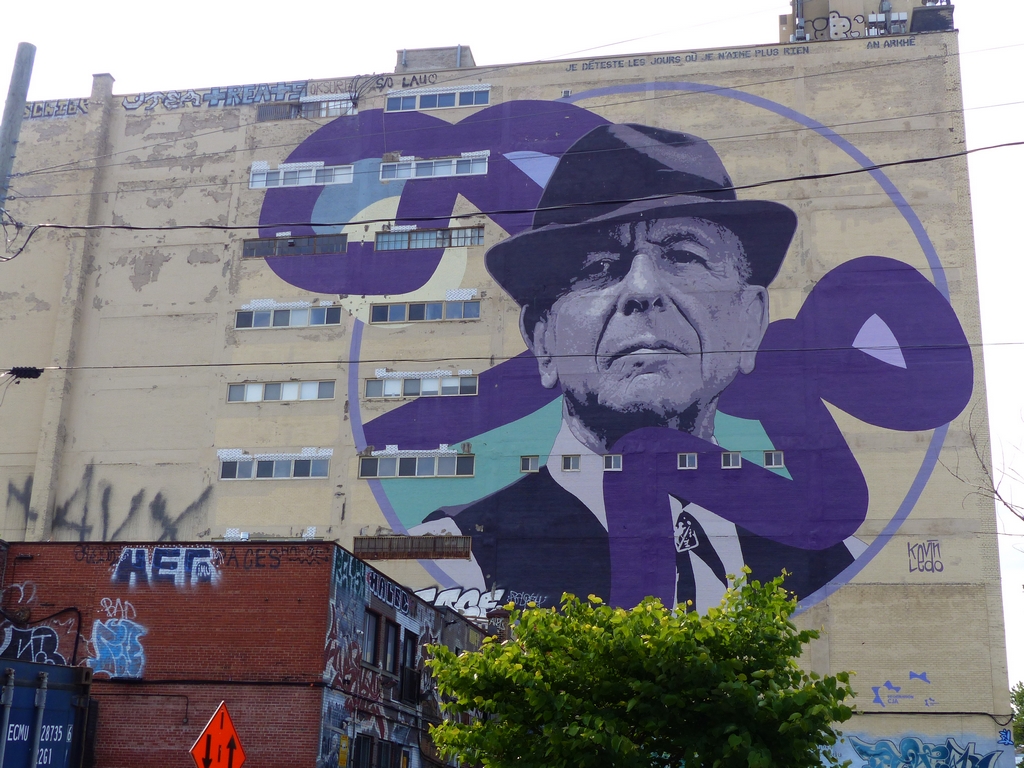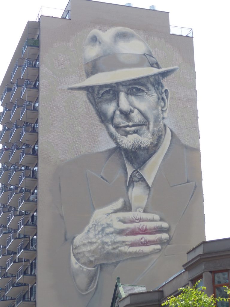 Et puis bien sûr il y a plusieurs murales sur l’icône locale Monsieur Leonard Cohen qui est né à Montréal. On en a d’abord vu une non loin de notre logement.