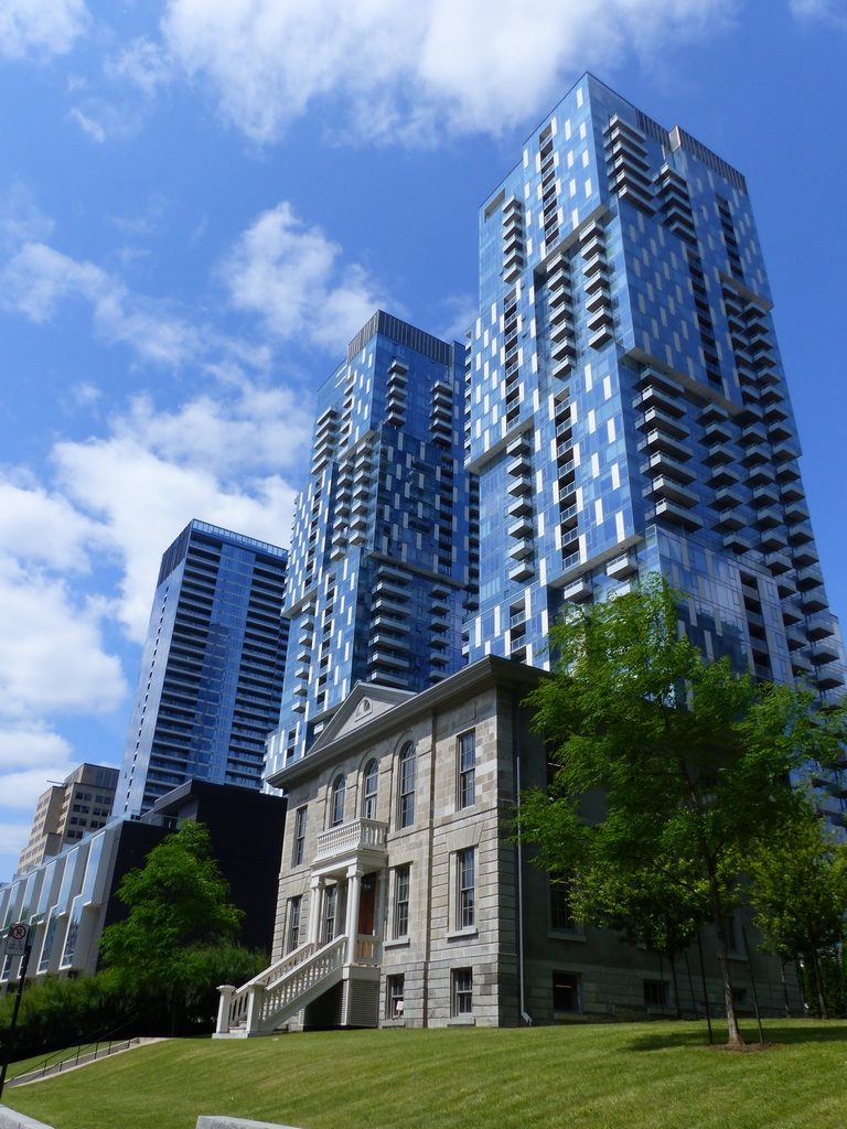 Montréal a aussi des immeubles (c’est le prix à payer pour être une ville moderne) et ça donne parfois un contraste surprenant avec un vestige d’une autre époque.