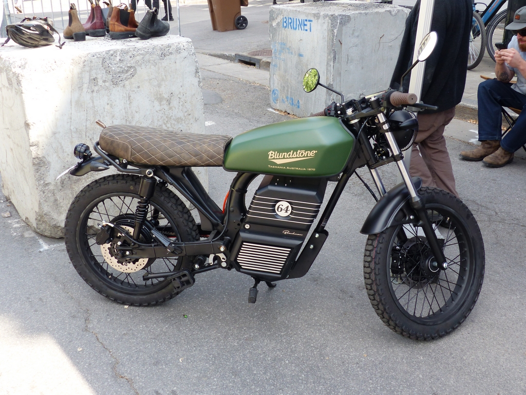 Avant de se quitter, une photo dans le lointain du stade Olympique de 1976 de Montréal, d’un vieux Ford reconverti en boutique et d’une superbe moto publicitaire pour une marque de bottes australiennes fabriquées à Hobart en Tasmanie.