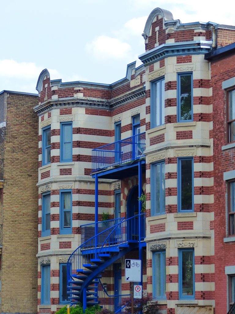 Mais pourquoi ces escaliers extérieurs dans une ville au climat rude (neige l’hiver, pluie au printemps…) vous demandez-vous ? Et bien, au XIXe siècle, la ville de Montréal adopte une loi rendant obligatoire un espace vert devant chaque bâtiment, réduisant d’autant l’espace dédié au logement. Pour se débarrasser des escaliers qui prennent de la place on les installe alors en façade.