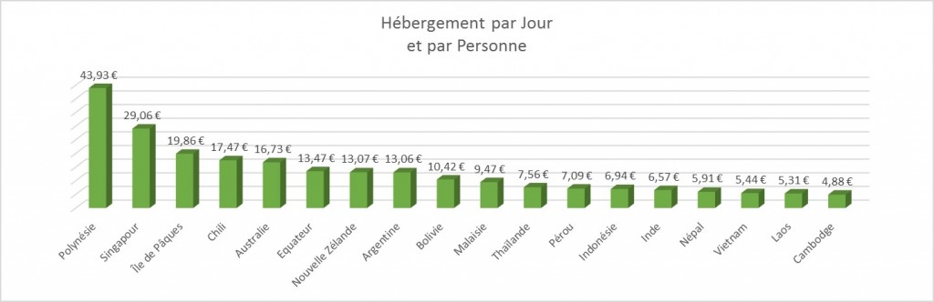 Sans surprise l’Océanie a été le continent le plus cher de notre voyage et l’Asie le moins cher. A noter Singapour qui est vraiment atypique.