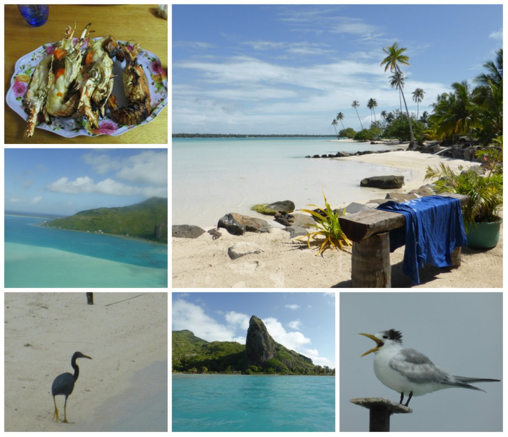 On vous propose aujourd’hui de venir avec nous sur la petite île de Maupiti, 13,5 km2 et 1200 habitants, une des îles de l’archipel de la Société. Bon ça c’est le point culturel et géographique mais si vous voulez profiter de plages de sable blanc, de l’ombre des cocotiers, d’un lagon turquoise qu’on peut traverser à pied, d’un tel calme qu’on se croirait sur une île déserte (enfin presque s’il n’y avait pas les coqs qui commencent à chanter dès 9 h le soir !!!) c’est ici qu’il faut venir !