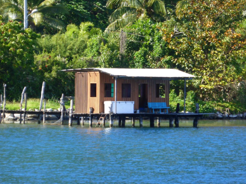 Dernière île visitée, Huahine, montagneuse et sauvage par sa végétation importante, où nous étions installés au bord du lagon très poissonneux…