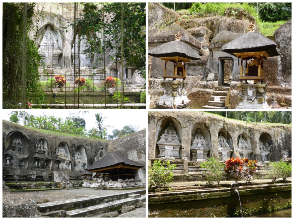 Toujours dans la petite ville de Tampaksiring, un autre temple mérite une visite. Il est situé au bord de la rivière, au milieu des rizières, et il faut descendre 230 marches pour y parvenir (en fait c’est surtout la montée qui est dure…). Le temple se compose de deux rangées de pagodes encastrées dans des niches creusées dans la roche. Elles se font face à face de chaque côté de la rivière… et personne ne peut dire à quoi elles servent !