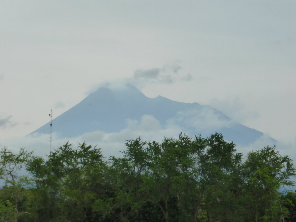 A la faveur d’une éclaircie, on a admiré de loin le volcan Mérapi.