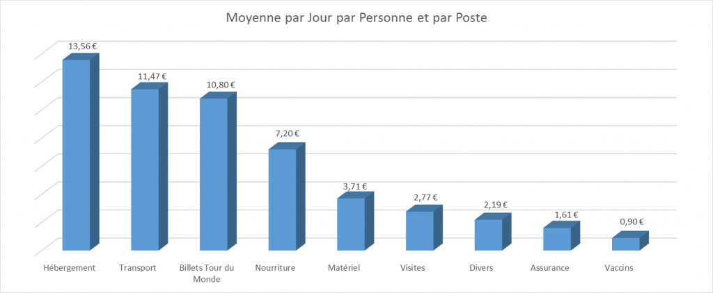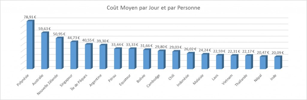 Ce qui fait un coût moyen de 37,18 € par jour et par personne (ou 34,96 € si on fait la moyenne des coûts moyens par pays).
