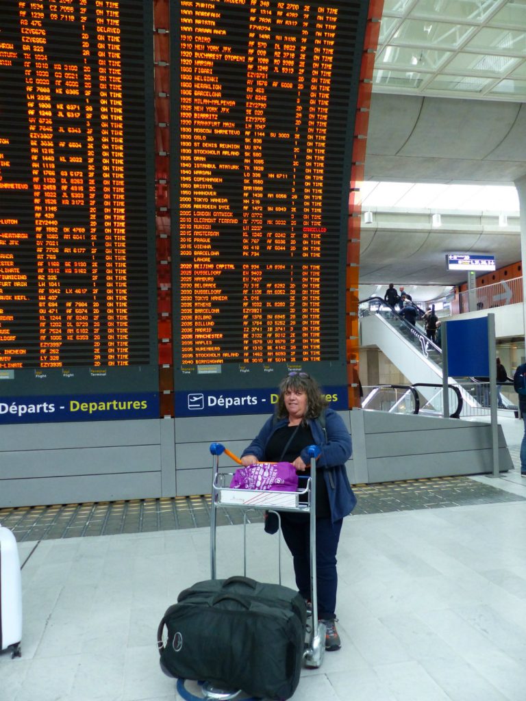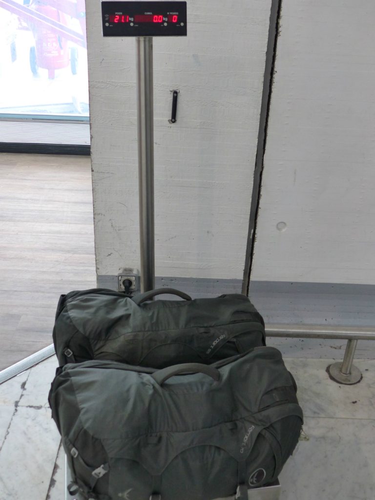 En attendant de repérer notre vol sur le tableau des départs devant lequel Martine piaffe d’impatience, nous sommes allés peser nos bagages afin de s’assurer que nous ne dépassions pas les trente kilos chacun autorisés par notre billet.