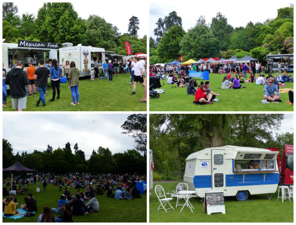 Plein de caravanes alignées proposaient des cuisines du monde entier. Les gens, une fois leur repas acheté, s’asseyaient dans l’herbe au milieu pour manger au son de la musique (live comme toujours).