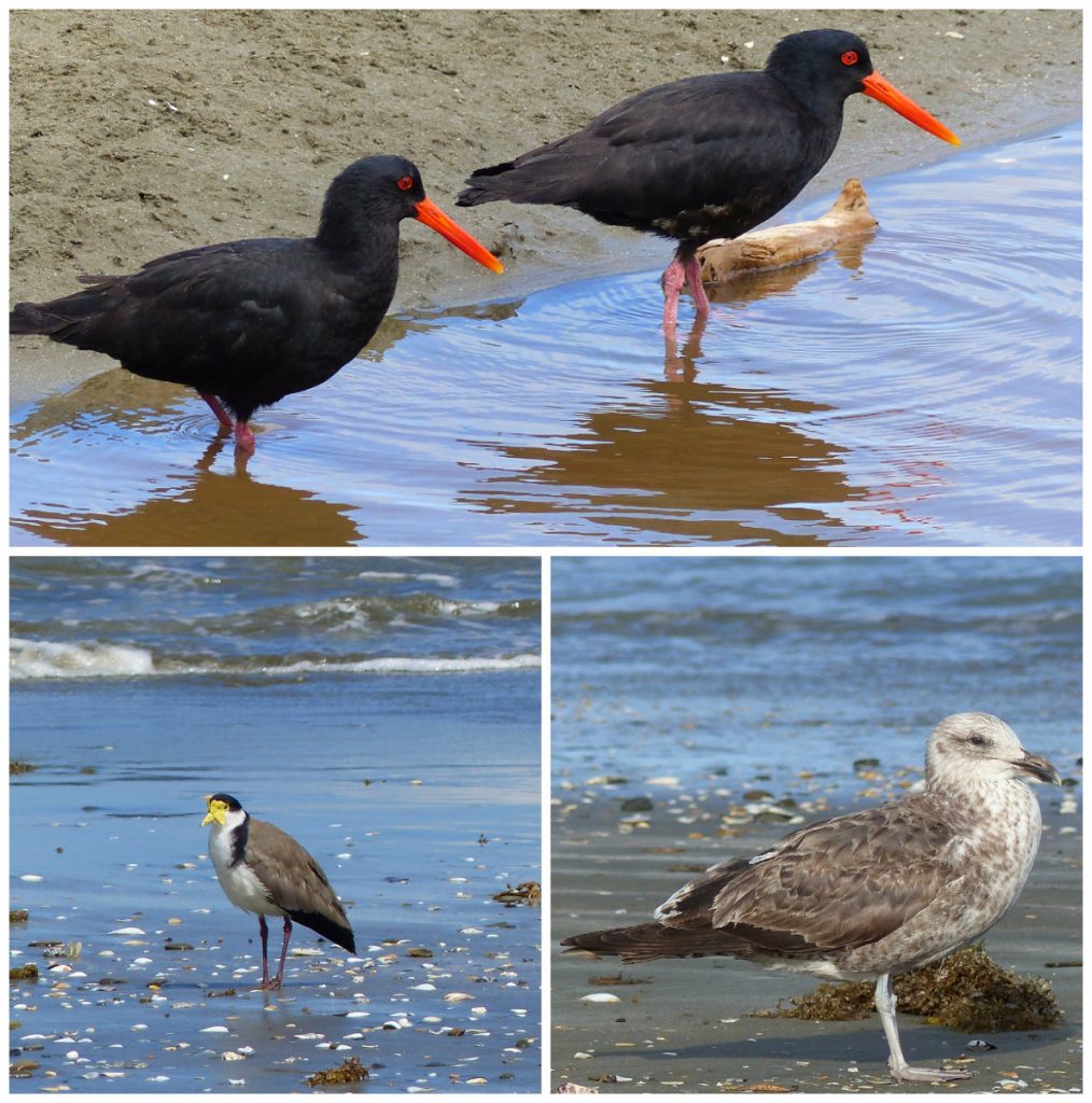 Le couple d’Oystercatcher (Huitriers en français), le Vanneau Masqué (ou Vanneau Soldat) et la Mouette Tachetée.