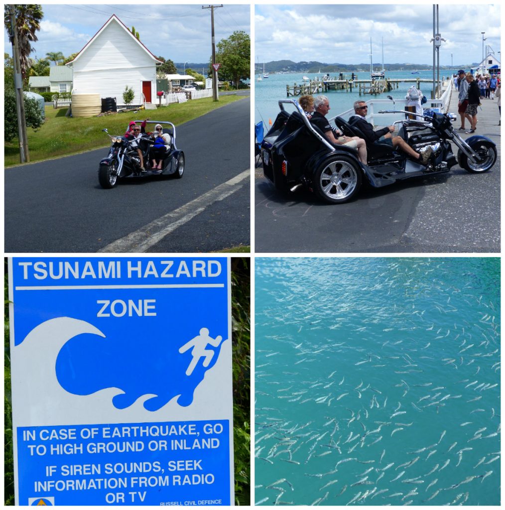 Bon parfois à Russell il y a aussi des touristes qui se croient dans easy rider (mais pas trop), il peut y avoir un risque de tsunami (mais on aime l’aventure) et les poissons prennent toute la place dans l’eau (mais on aime bien le poisson).