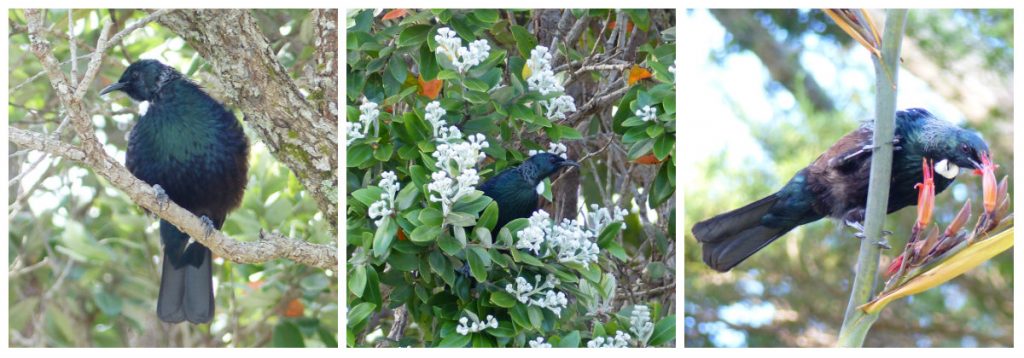 Et enfin le Tui oiseau endémique de Nouvelle-Zélande, omniprésent dans les hautes branches des arbres et, de ce fait, très dur à photographier !