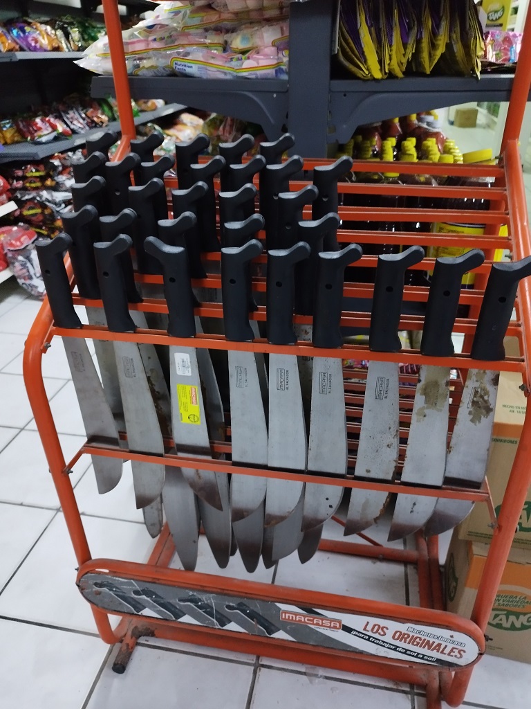 Un rapide petit tour dans un magasin d’Orange Walk (18 000 habitants, deuxième ville du pays) nous fait retomber en enfance mais nous pose question sur leur façon de jardiner (ou de discuter ?).