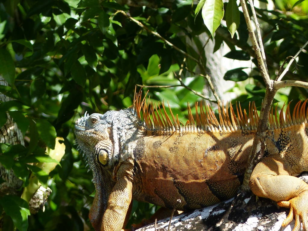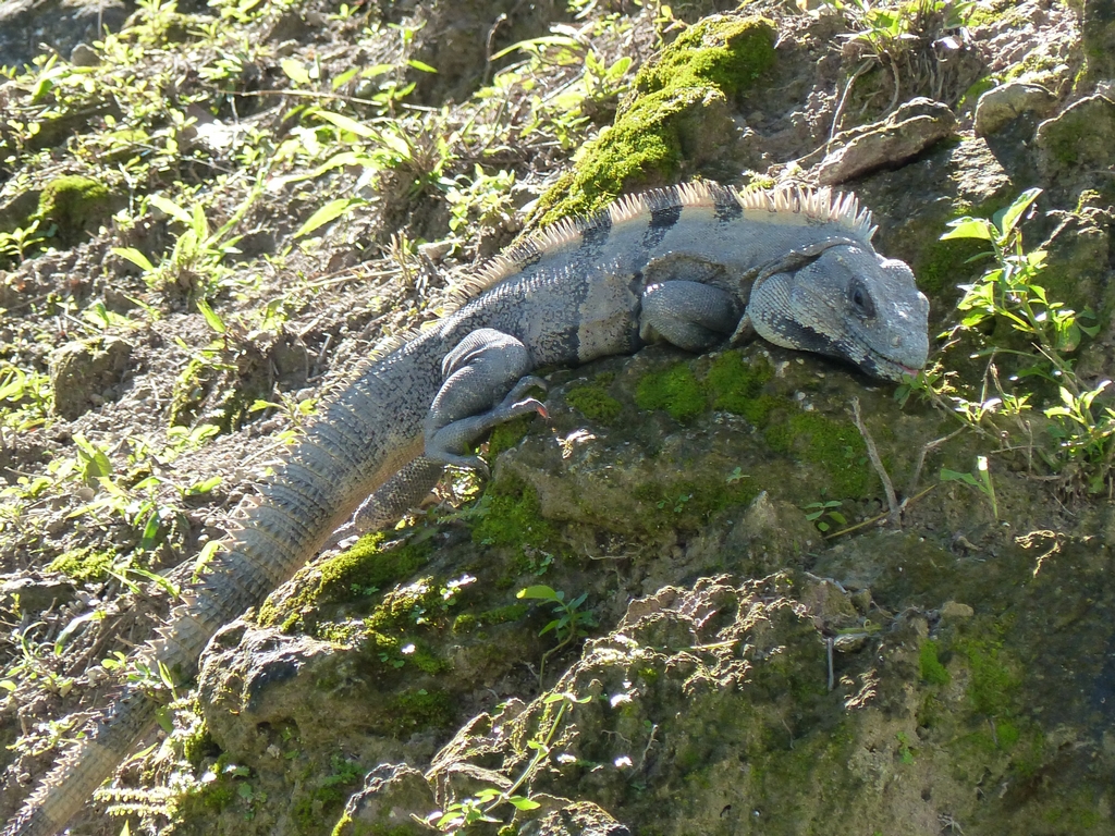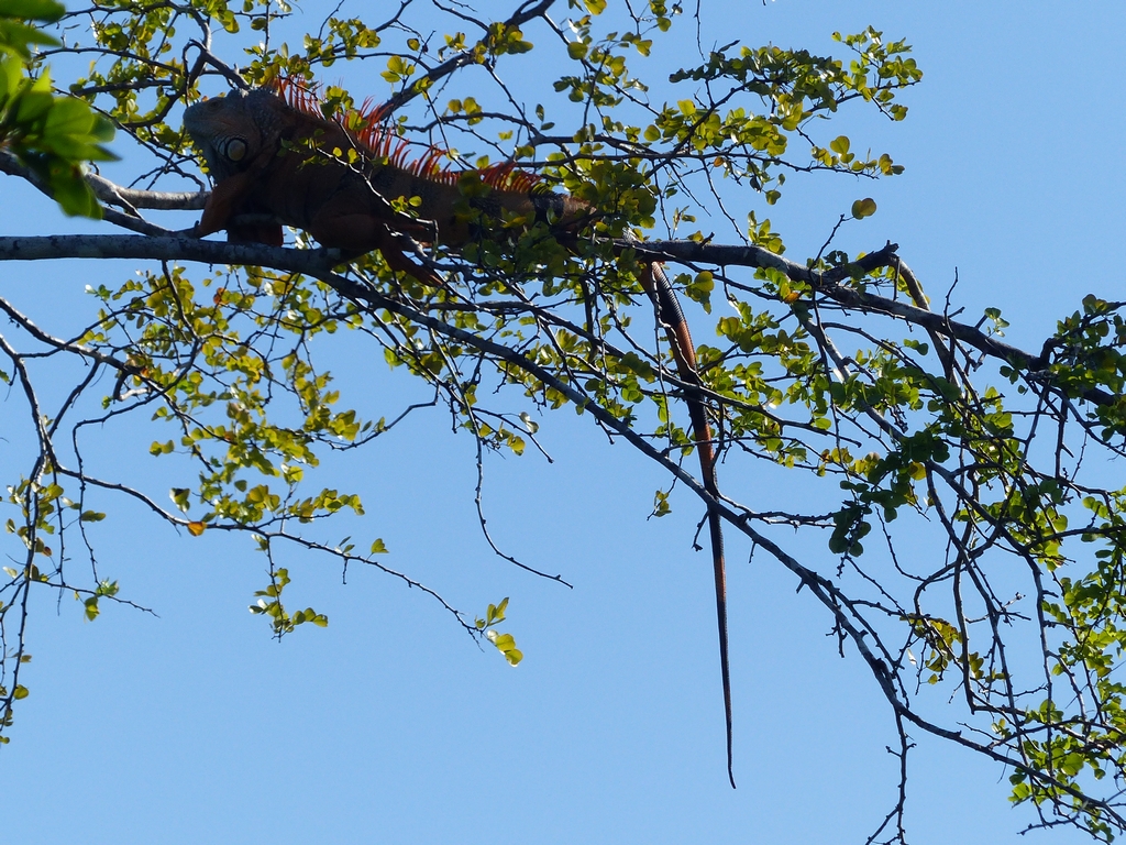 La visite finie, retour en sens inverse, 2 kms de marche à pied (en descente cette fois-ci, ça correspond davantage à notre profil de sportif), l’occasion de voir des iguanes, un gris et un jaune vraiment énorme.