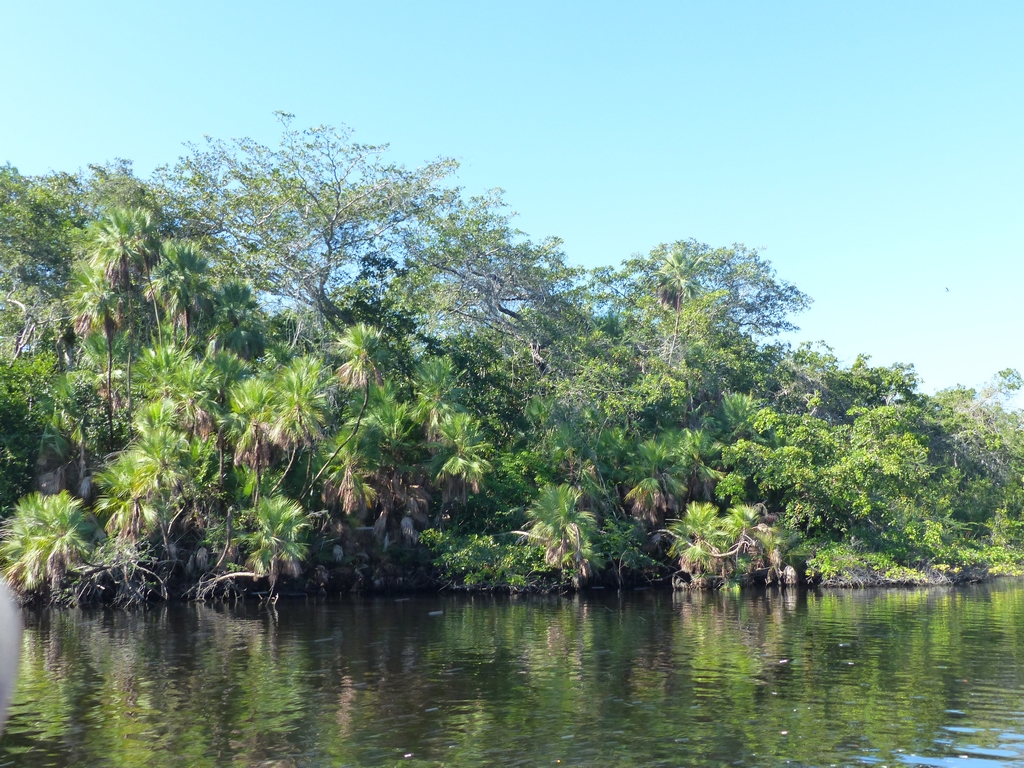 Il faut une heure et demi de bateau sur la New River (cheveux au vent) pour y accéder, ce qui est l’occasion d’une belle balade et de quelques découvertes.