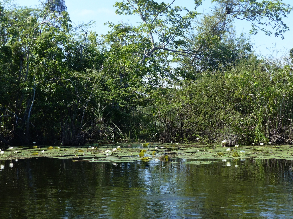 Le lendemain, levés à l’aube, une voiture vient nous prendre à la porte de notre hébergement (cette fois c’était une cabane en bois au fond du jardin) pour nous emmener à Lamanai, site archéologique qu’on ne peut faire qu’en tour organisé, car aucune route n’y mène.