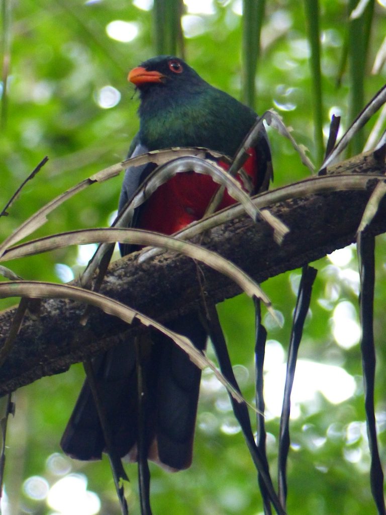 Plus paisibles sont les oiseaux, notamment le Merle fauve et le très beau Trogon de Masséna.