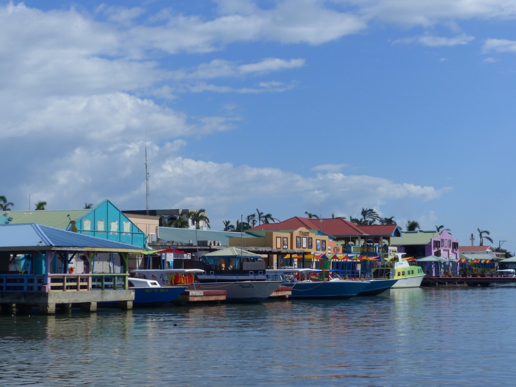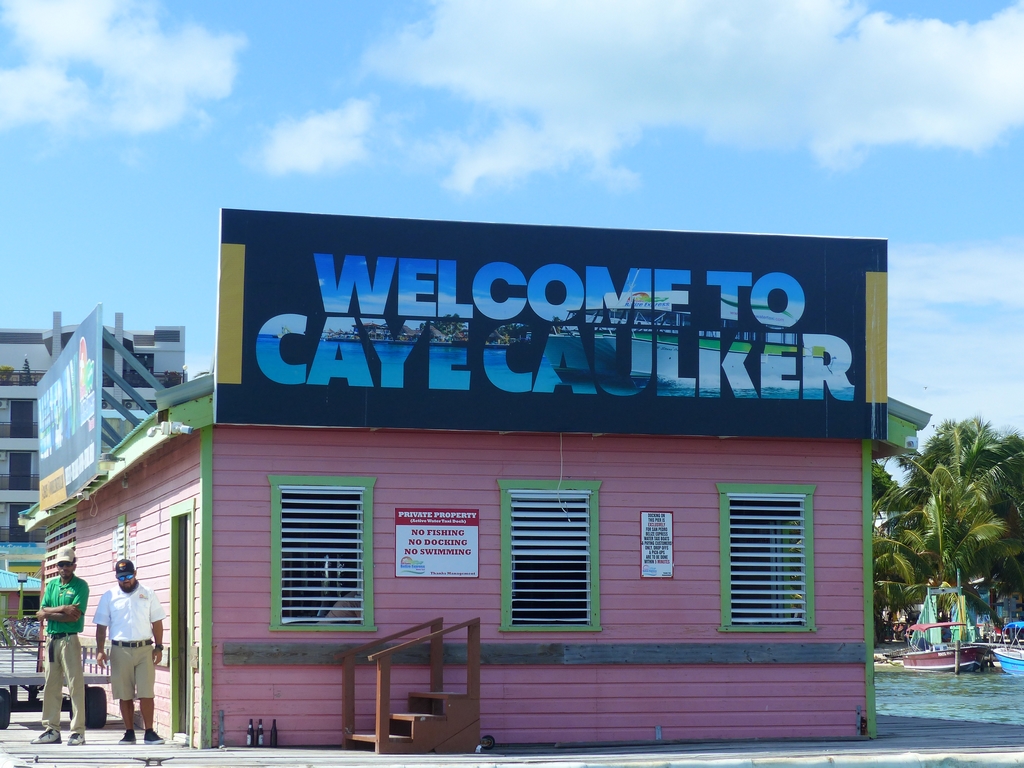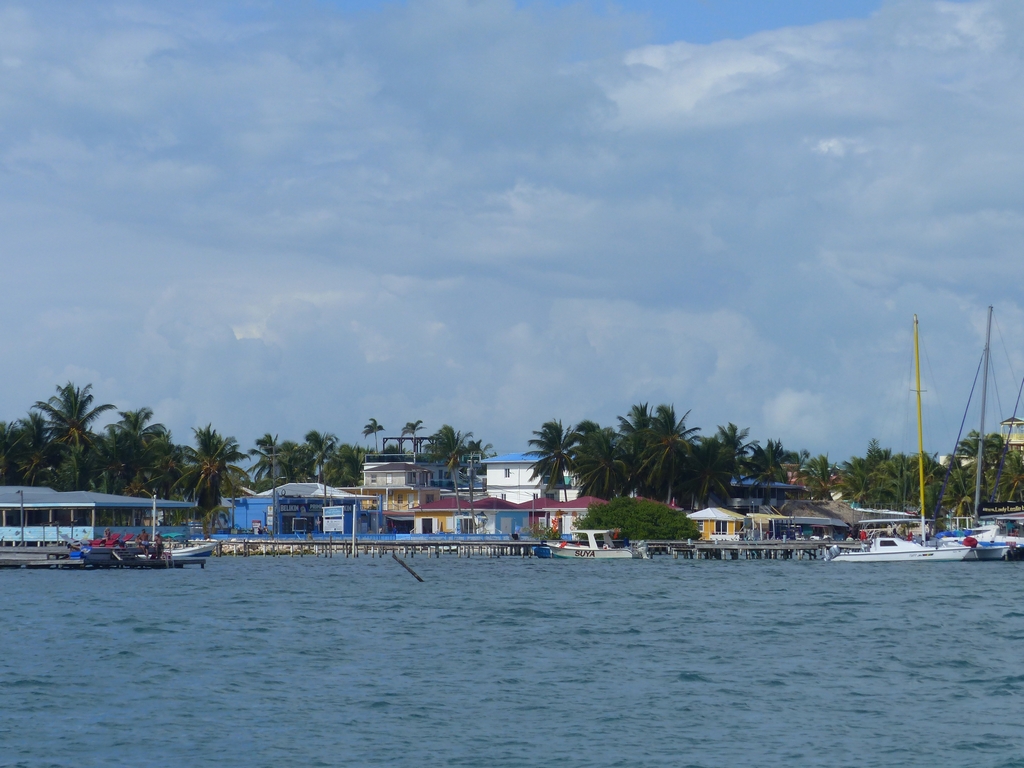 Le lendemain, on attrape de justesse le bus pour Belize City (merci aux beliziens qui attendaient un autre bus d’avoir sifflé le chauffeur qui partait). 1h30 plus tard nous traversons la ville (sans peine encore grâce à nos sacs à roulettes) en direction du terminal des ferrys. Nous prenons le bateau de 12h00 et à 13h00 nous accostons à Caye Caulker.