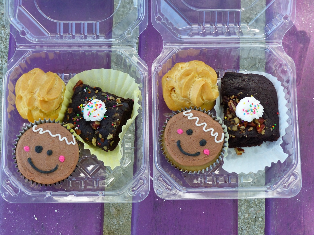Et pour le dessert on avait des gâteaux gratuits offerts par la “Heritage Bank Limited” pour nous remercier d’avoir utilisé leur ATM (c’est bête on était au plafond de la carte, on ne pouvait pas recommencer le lendemain pour voir si on en avait d’autres). Pas sûr qu’on aura la même chose en France…