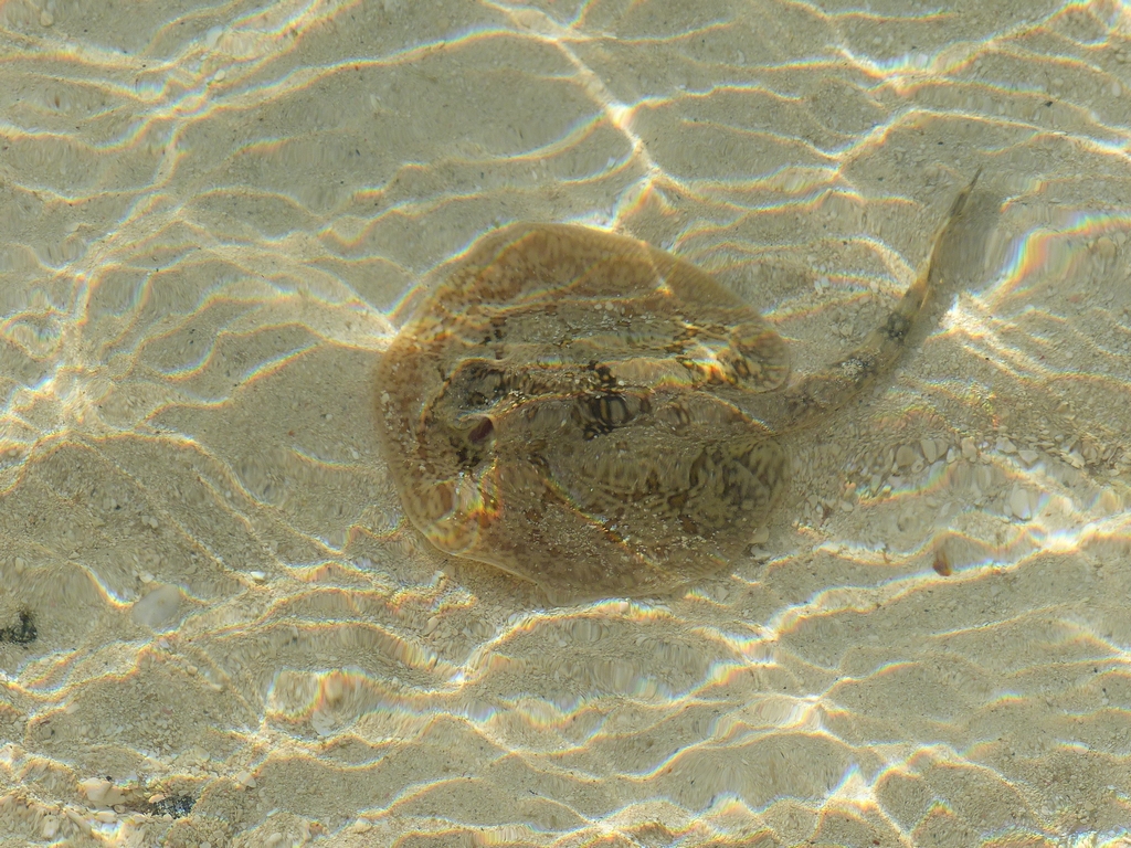 Au rayon bestioles, sous l’eau cette fois, des raies qui passaient à l’heure de l’apéro voir si il n’y avait pas quelque chose à grignoter (bon elles passaient un peu tôt, vers 16h00, mais tous les jours par contre).