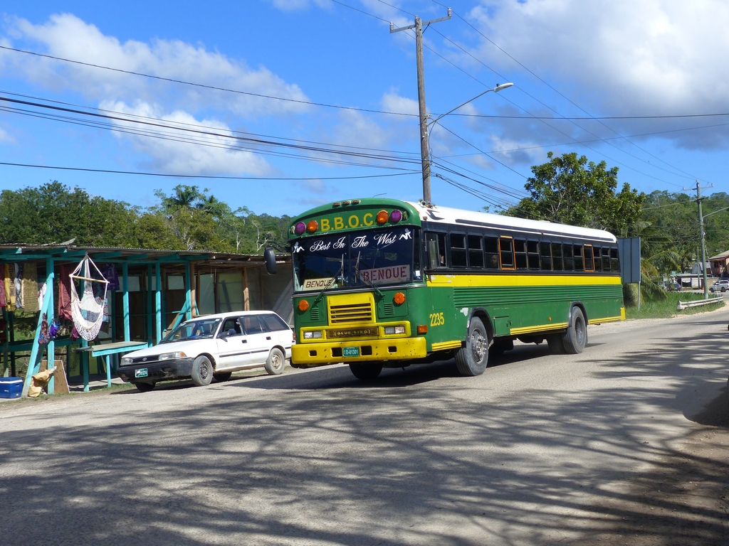 Les bus au Belize, surnommés “chicken bus”, sont majoritairement des anciens autobus scolaires américains qui, lorsqu’ils atteignent l’âge de dix ans, sont vendus aux enchères. Une fois repeints ils servent alors à transporter des gens et des marchandises en Amérique Centrale. Le mot “poulet” se réfère au fait que les ruraux locaux transportent occasionnellement des animaux vivants comme des poulets.
